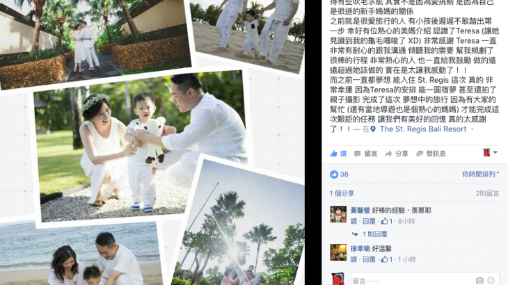 客戶推薦Apr.08.2019愉快的親子旅拍海島行以前想到峇里島都覺得是浪漫渡假勝地,但認識BB團隊後,想不到峇里島是這麼親子呀~ 太驚艷了!