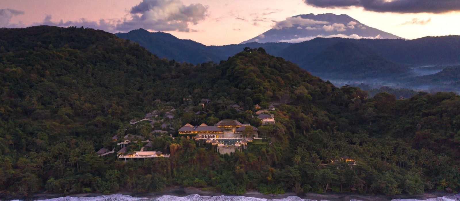 Amankila的意思是「寧靜之山」,從渡假酒店的懸崖邊可俯瞰一望無際的龍目海峽和火山岩堆積而成的東海岸美景,每日清晨微光始露,當望向遠方及山腳,在山嵐環繞及包圍之下,可以見到峇里島最美麗的景象,再望向更遠處,甚至可以輕易瞧見聖山「阿貢火山」矗立於前,那種感覺神祕又神聖。