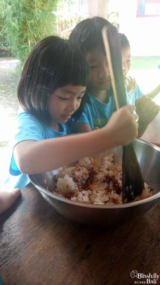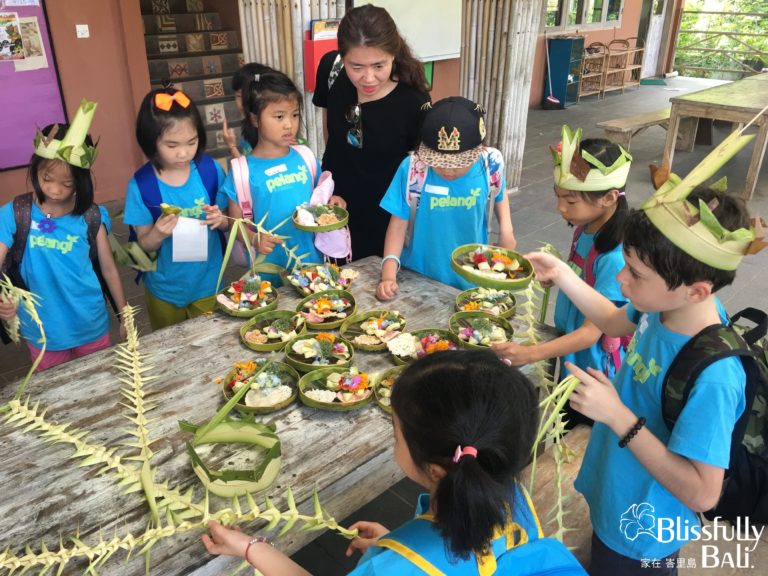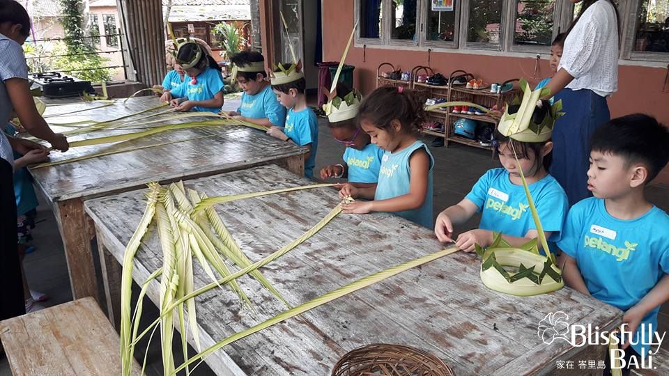 傳統文化是峇里島民生活很重要的一部份,把這樣的文化傳承下去是大家很致力在經營的,所以第一週的Creative Culture 一早的課程就是讓孩子們瞭解隨處可見的敬神Canang ,老師會先在教室講解為什麼要這樣做,裡面包含哪些素材如何製作, 在講解結束之後就是到外面教室大家動手做出屬於自己的Canang。