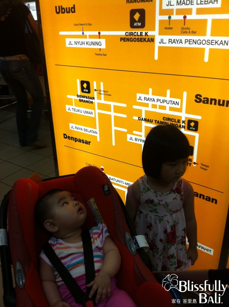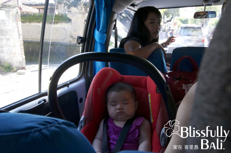 5 : 到了峇里島後了交通: 天堂真的到了,當你通過五小時的飛行與挑戰後,到達峇里島真的就是到達萬神祝福的島嶼啊。一踏出機場,我的幫手們正準備好了熱情地迎接我們,他們就是我們這趟旅程的司機先生及導遊小姐/ 先生 ( 註二) 。一踏出機場 ,導遊馬上把手上的東西全部接手了,司機也馬上把行李及推車搬上車,這時我們只需要輕輕鬆鬆帶著孩子上車吹冷氣,喘口氣迎接屬於我們大家的假期。