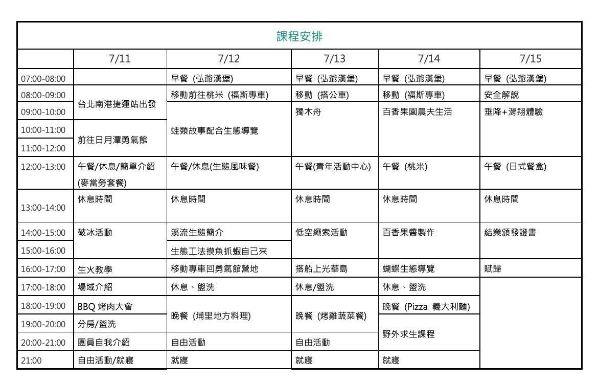 *活動多面向,包含室內 、野外、靜態 、動態。
